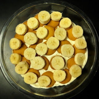 4. In a trifle bowl or glass serving dish, layer vanilla wafers, sliced bananas, and pudding mixture. Repeat, creating 3-4 layers until all of the pudding mixture is used. Refrigerate at least 30 minutes, or up to 6 hours, before serving